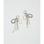 イヤリング フェイクファービジューリボンイヤリング レディース