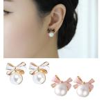 ピアス イヤリング レディース リボン 蝶結び パール 真珠 ゴールド ピンク ブラック ホワイト ライトブルー 可愛い エナメルコーティング