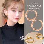 ピアス アレルギー対応 レディース フープピアス 18金 ピンクゴールド ツイスト ひねり シルバー925 つけっぱなし ウェーブ