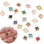 【191 コネクタ】 クローバー 約9×14mm 1個 ゴールド ガラス ラインストーン ハンドメイド