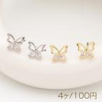 デザインピアス ちょうちょ 蝶々 リボン型 ジルコニア ストーン付き キャッチ鉄製 メタルピアス 約6×7mm(4ヶ)