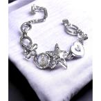 ブレスレット レディース 女性 アクセサリー ファッション雑貨 チェーン リボン お花 フラワー アジャスター付き ラインストーン シルバーカラー ピ