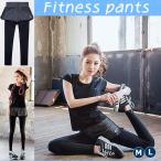 ヨガパンツ レディース ヨガレギンス スカート付き ヨガウェア レギンス スパッツ 重ね着風 ホットヨガ トレーニングパンツ フィットネス