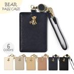 パスケース 定期入れ レディース リール おしゃれ フェイクレザー くま プレート リール付き