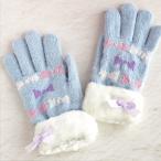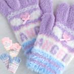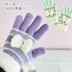 手袋 ニット 五本指 キッズ 女の子 リボン付き かわいい 子供 のびのび手袋 もこもこ 子供手袋 日本製