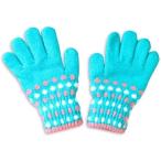 手袋 キッズ 女の子 男の子 ニット あったか のびのび 5本指 子供用(水色)