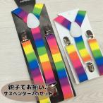 サスペンダー 親子ペア 2点セット キッズ 男の子 女の子 子供用 メンズ レディース 男性 女性 おしゃれ かわいい Y字 お揃いコーデ レインボー