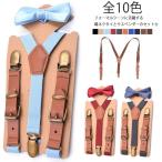 【特価】サスペンダー 蝶ネクタイ 2点セット Y型 3点留め フェイクレザー キッズ ジュニア ベビー 子供 子ども ボウタイ セミバタフライ 吊りバンド フ
