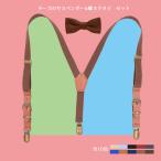 サスペンダー 蝶ネクタイ 2点セット キッズ 子供用 Y型 4点留め クリップ バイカラー シンプル フォーマル 幅2.5cm 長さ65cm サイズ調