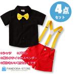 サスペンダー 子供服 コスチューム セットアップ おでかけ 半袖 記念写真 大人気 シャツ ズボン 蝶ネクタイ サスペンダーの超かわいい4点セット