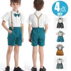 フォーマルスーツ 半袖シャツ ショーツ オーバーオール 上下セット フォーマルロンパース 紳士風 サスペンダー 子供服 シャツ 入園式 キッズスーツ 4点セット
