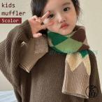 マフラー キッズ 子供用 女の子 男の子 ニット ダイヤ柄 防寒 あったか 暖かい 秋冬 かわいい おしゃれ カジュアル