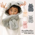 うさぎ耳付き キッズ フードマフラー アニマル フード マフラー あったか ふわふわ ボア 差し込み ラビット うさ耳 どうぶつ 大人 兼用 かわいい 冬小物