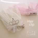 ティアラ ヴェール ヘアクリップ ショート ビジュー シルバー ドット チュール ヘアアクセサリー キッズ 髪飾り ベール 子供 女の子 ガールズ 髪留め かわいい