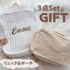 3点セットギフト】名入れ リュックサック 名前入り 刺繍 リュック 一升餅 一升米 出産祝い ポーチ おむつ オムツ 誕生祝い 一升パン 名前タグ ギフトセット