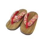 下駄 子供用 キッズ 女の子 浴衣 焼桐茶台 18cm 19.5cm 21cm 赤色地古典花
