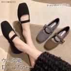 ファー パンプス ローファー ファー付き スクエアトゥ 甲ストラップ ふわもこ フラットヒール おしゃれ 可愛い 歩きやすい 履きやすい 美脚 韓国風 暖かい 黒
