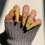 ネイルチップ 黄色 和柄 和風 ロング バレリーナ 韓国 成人式 振袖 蝶 パール イエロー マットカラー ワンカラー 単色 シンプル 3D 貼るだけ 繰り返し 派手 日常