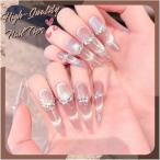 ネイルチップ 付け爪 チップ ロング 24枚セット グルー付 3Dアート 蝶 キラキラ ストーン ビジュー ラメ ホワイト 時短ネイル 貼るネイル セルフ つけ爪