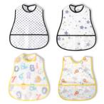 [スリーマッシュルーム] 食事用スタイ ベビー 子供 スーパービブ ソフトタイプ - 防水よだれかけ 赤ちゃん 離乳食 袖なし ポケット付き 軽量 名