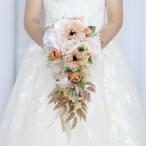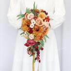 ウェディングブーケ ブライダルブーケ キャスケードブーケ 秋色 ウエディングブーケ 花嫁 ブーケ 造花 花束 華やか 結婚式 二次会 披露宴 リゾート婚 ベージュ