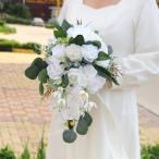 ウェディングブーケ ブライダルブーケ キャスケードブーケ ウエディングブーケ 花嫁 ブーケ 造花 花束 華やか エレガント 結婚式 二次会 披露宴 ホワイト 白