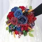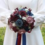 ブーケ 造花 ウェディングブーケ ブライダルブーケ ラウンドブーケ ウエディングブーケ 花嫁 可愛い 結婚式 二次会 披露宴 ワインレッド 赤 ブルー 青