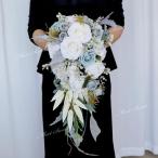 ウェディングブーケ ウエディングブーケ キャスケードブーケ ブライダルブーケ 花嫁 ブーケ 造花 華やか 結婚式 二次会 リゾート婚 ホワイト 白 ブルー 青