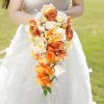 ウェディングブーケ ウエディングブーケ キャスケードブーケ ブライダルブーケ 花嫁 ブーケ 造花 華やか 結婚式 二次会 披露宴 贈答品 リゾート婚 オレンジ