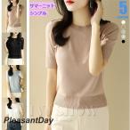 サマーニット レディース ニット カットソー トップス 無地 シンプル クルーネック
