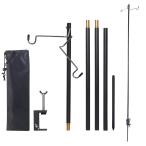 ランタンスタンド ランタンポール 4段階高さ調整可 折りたたみ 両用式 打ち込み クランプ式 長い ペグ ランタンハンガー付き ランタンフック付き 高