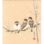 色紙(冬)中谷 文魚作画「雪雀」 色紙寸法24.2X27.2cm