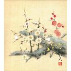 色紙(冬)片山 邦夫作画「紅白梅」 色紙寸法24.2X27.2cm