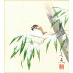 色紙(冬)中谷 文魚作画「竹に雪雀」 色紙寸法24.2X27.2cm