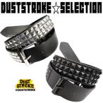 DUSTSTROKE (ダストストローク) 3連 スタッズ ベルト 鋲 PU レザー ピラミッド メンズ ブラック シルバー 黒 銀