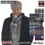 マフラー メンズ ユニセックス ウール100% チェック柄 180cm 毛100% 冬 防寒 防風 おしゃれ 暖かい