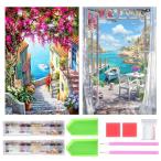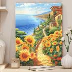 内フレーム付き ダイヤモンドアート 40×50cm 刺繍キット 海沿い ひまわり 花畑 街並み パズルアート リハビリ 趣味 絵画 モザイクアート