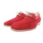 フェランテ FERRANTE スエード デッキシューズ スリッポン ローファー 赤 レッド 6.5 約24.5cm IBO67 メンズ