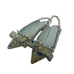 良品 TSURU BY MARIKO OIKAWA ツルバイマリコオイカワ Sissi パール フラワープリント フラットシューズ 35 ブルー グリーン レディース 古着 中古