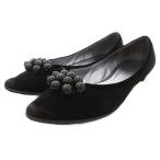 オデットエオディール Odette e Odile アローズ フラットシューズ 24.5cm パンプス ポインテッドトゥ ビジュー スエード 黒 ブラック