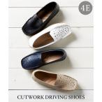 靴 大きいサイズ レディース ゆったり幅広 カットワーク ドライビング シューズ 低反発中敷 ワイズ4E 26.0〜26.5cm ニッセン nissen