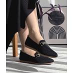 パンプス スクエアトゥバックルフラットシューズ「低反発スポンジ入り」