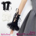 フリル付き リブ 編み上げ アームグローブ/アームカバー/アームウォーマー/手袋 ショートグローブ フィンガーレス ロリータ ゴスロリ 衣装 ダンス レディース 黒