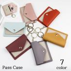 パスケース 定期入れ キーリング付き 薄型 横型 レザー調 スナップボタン カードケース カード入れ 小銭入れ スリム キーホルダー レディース メン