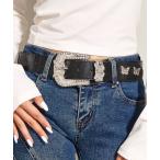 ベルト バタフライビジューバックル太めレザーベルト レディース