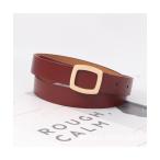 ベルト 無段階調整細め同素材スクエアバックルベルト レディース
