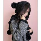 ネックウォーマー スヌード あったか裏起毛ポンポンニットフーディーマフラー レディース