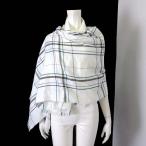 ストール ショール 大判 チェック柄 白 ホワイト ブルー グリーン 美品 レディース