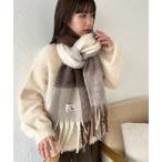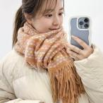 配色 チェック フリンジ ニット マフラー 女性 レディース ストール ショール ネックウォーマー 秋 冬ストライプ カラフル 厚手 大判