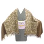 ショール 大判 ストール ひざ掛け 2色合わせ 薄茶色地唐草可憐花 和装 洋装 着物 女性用 和柄